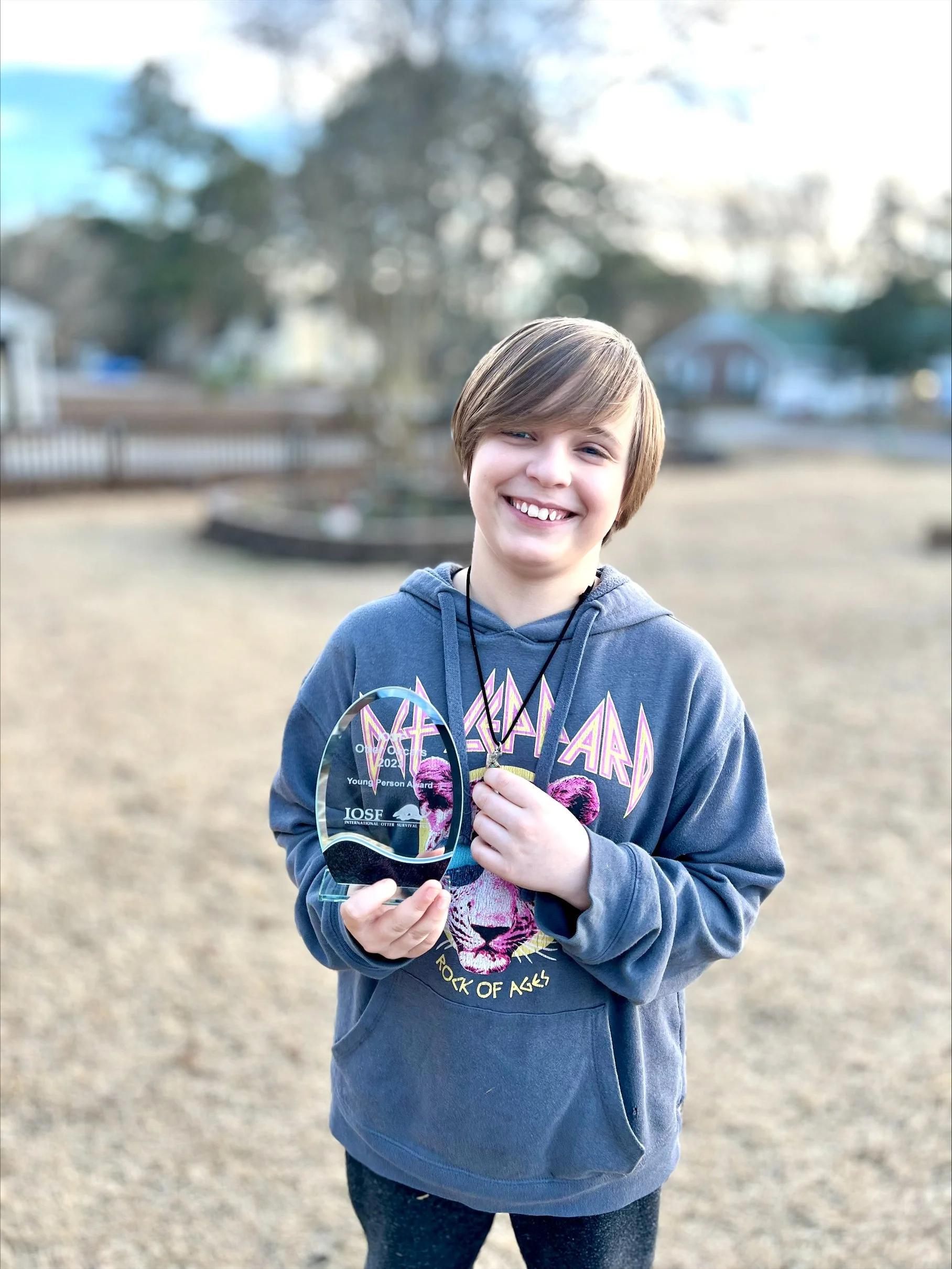 Our next Team Otter meet is with Asher Scott McCarty who is dedicated to otters and has shown this in various ways, including sharing information with classmates and educating people about them. Asher has also adopted local otters and raised money for IOSF, using tireless and resourceful efforts.